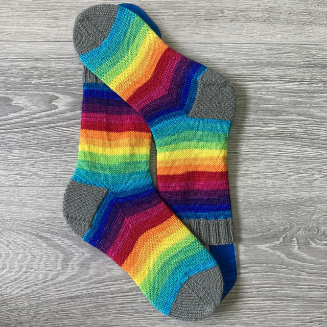 The sock colours are bold rainbow stripes with a contrast black cuff, heel & toe